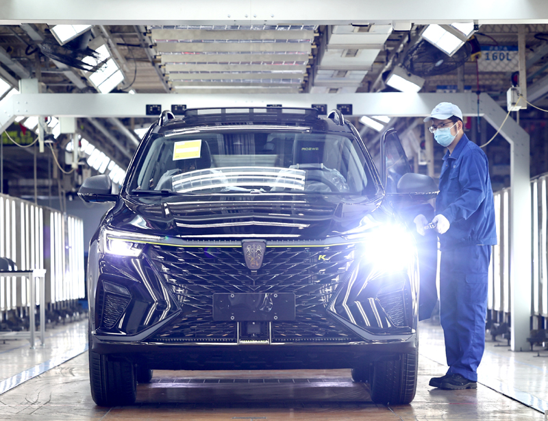 4月23日,上汽临港乘用车工厂工人在总装车间工作。新华社记者 陈建力 摄
