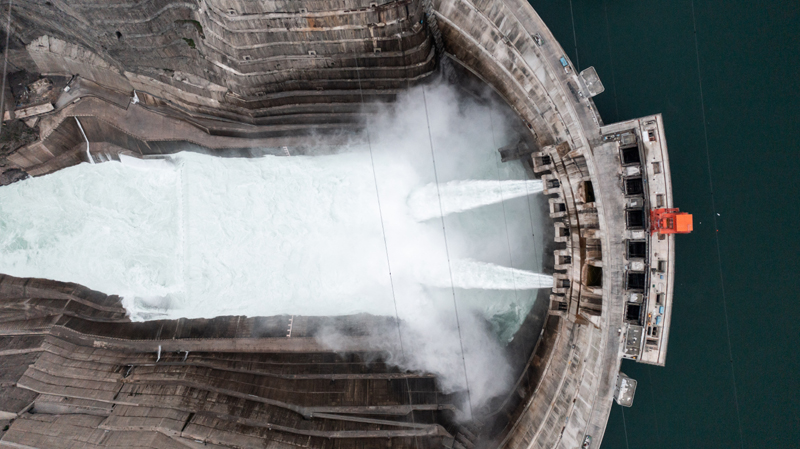 白鹤滩水电站一景(5月19日摄,无人机照片)。新华社记者 胡超 摄