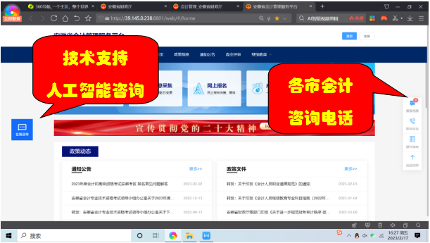 信息采集或变更网址(安徽省会计管理服务平台):http://39.145.0.238:8801/web/#/home;