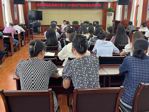 5月24日上午,濉溪县财政局组织学习《中国共产党纪律处分条例》,会议由党总支书记徐东旭主持,全体党员干部参会。