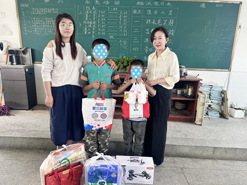 临涣镇大高庄的孙国表、孙子沐兄弟俩父亲去世,母亲智力残疾,跟着年迈的大伯大妈生活。“爱心妈妈”给兄弟俩送上了书籍、牛奶还有玩具,并与孩子和老师深入交谈,了解他们的生活学习,耐心倾听他们的心声。弟弟看到“爱心妈妈”带来的遥控汽车和肯德基时,脸上洋溢出幸福的笑容,他说上次他讲喜欢遥控汽车想吃汉堡,这次“爱心妈妈”就都给他带来了,他好开心。“爱心妈妈”鼓励孩子们要勇敢的面对生活中的困难,努力学习,用知识改变命运。